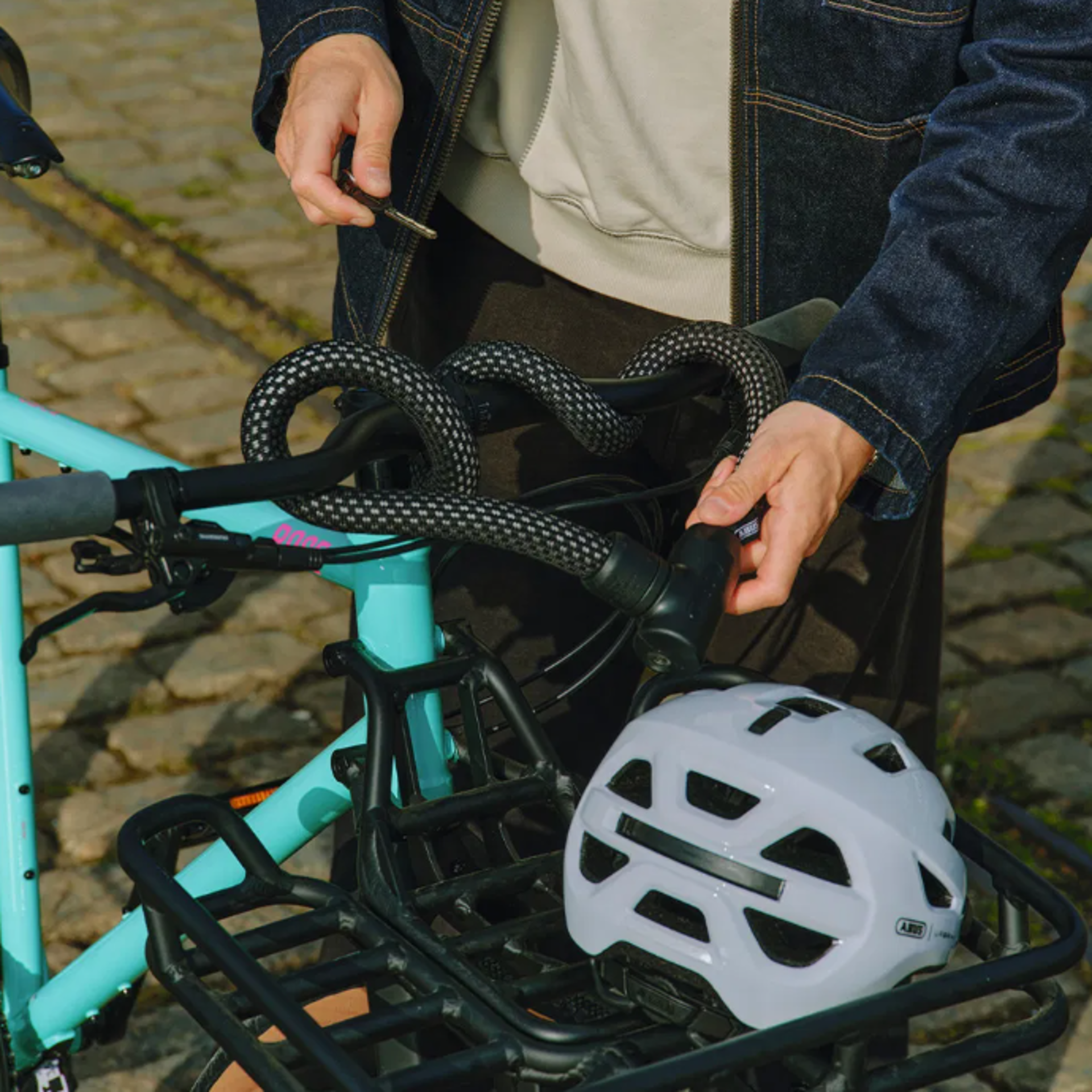 The textile lock in a trendy knitted look combines high-quality ABUS security technology with urban design.