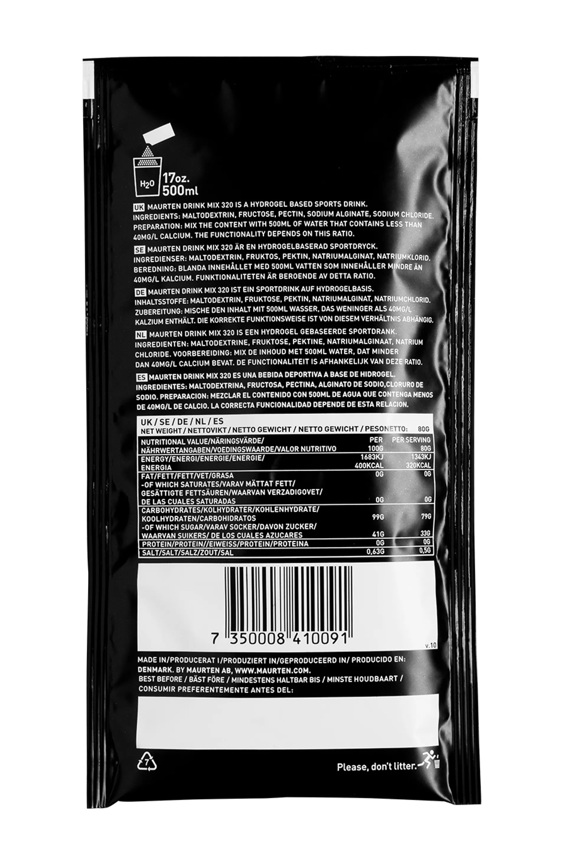 Studies have shown that our bodies can make use of up to 90 grams of carbohydrates per hour. One Drink Mix 320 sachet, mixed with 500 ml of water – contains 80 grams of carbohydrates.