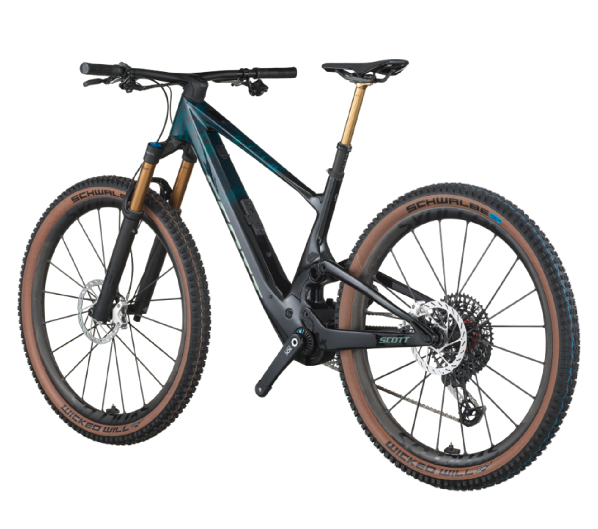 This Lumen 900 SL features a brightly illuminated color screen for crisp viewing of its motor and battery performance. The Lumen 900 SL is also specced as your ultimate e-MTB with a 140mm FOX Factory 36 SL fork, custom Scott 130mm integrated shock, SRAM XX Eagle AXS, and Motive Ultimate brakes.