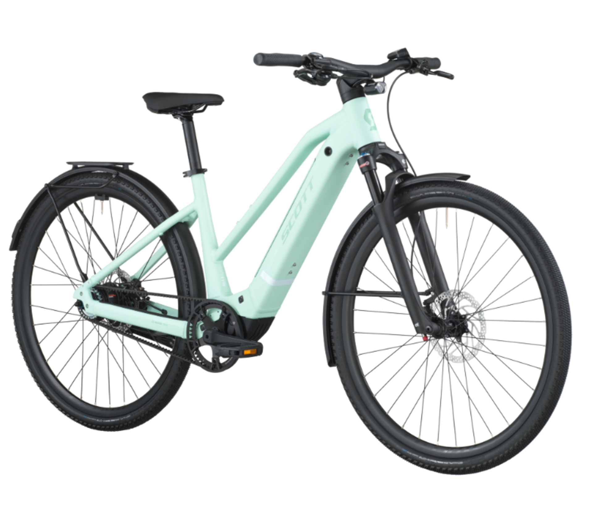 Scott Passage 10 Belt Slope eHybrid Bike in Mint Green