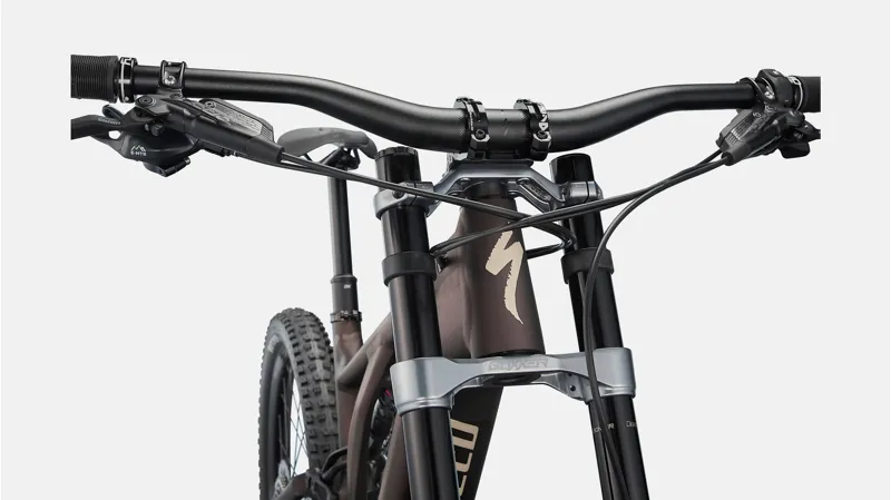 • Yes, that a dual-crown fork up front. When Specialized launched the original Kenevo we started seeing riders strapping dual-crown forks on their Levos—it was that rowdy of a bike. So when they set out to design this latest Kenevo, they decided to equip their Expert model with a 180mm-travel RockShox Boxxer. Absolute steering precision and downhill control. Bring it on.