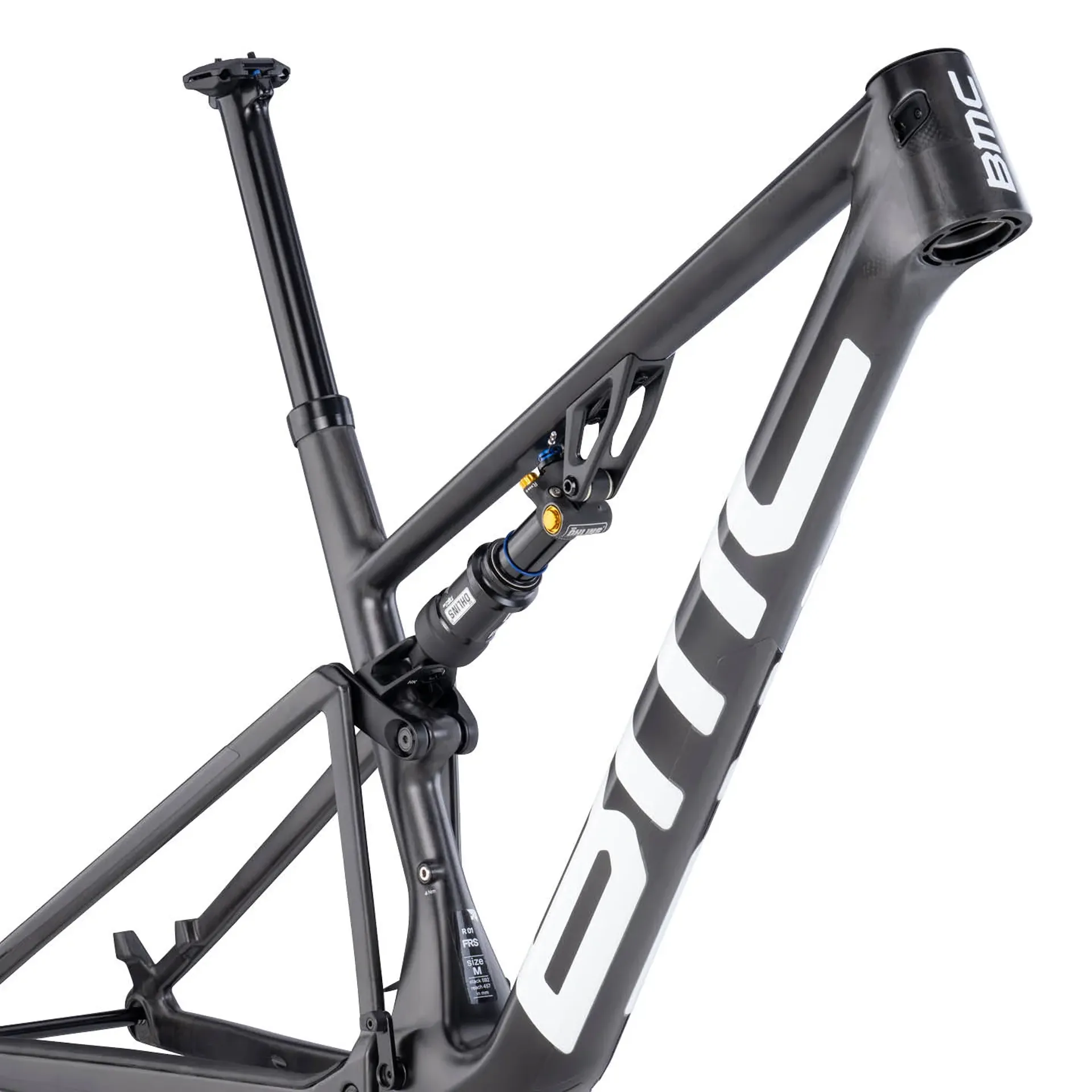 Ready for race day or a full season of competition. The Fourstroke 01 frameset brings together cutting-edge BMC design and uncompromising Impec Lab engineered performance. At its core is BMC’s APS suspension kinematics and the ultra-efficient Autodrop integrated dropper seatpost, delivering efficiency and speed on any terrain. Its Premium Carbon frame is optimized for modern XC racing thanks to a progressive geometry, and its 120mm of front and rear travel. Exclusive to this model, the Variation 0 finish sticks to the essential single layer of PU clear coat, and makes the lightest frameset in our collection. Moreover, it could be the perfect base for your custom paint project. It's now your time to shine bright on the podium and with style.
