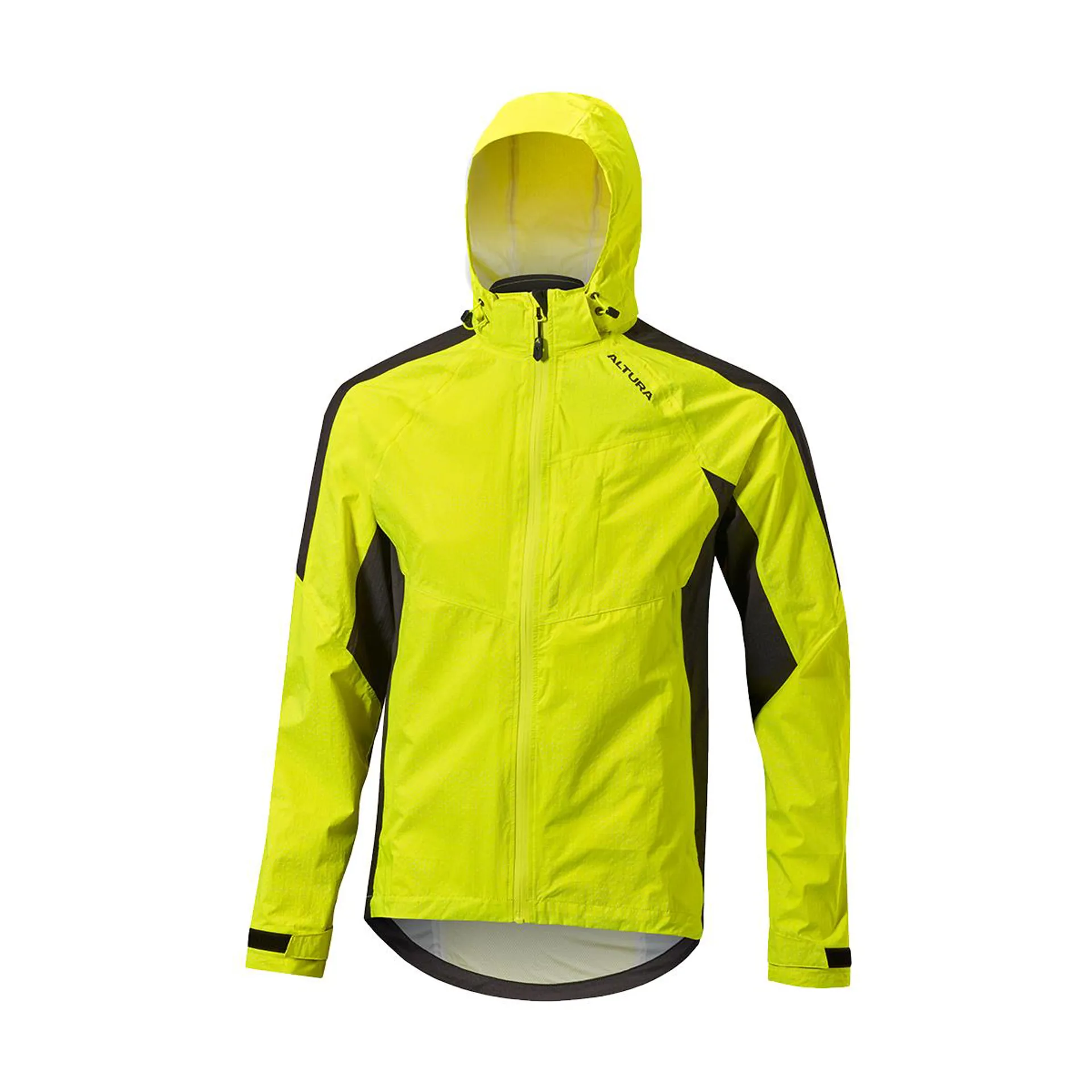 The altura tornado waterproof jacket is great all round jacket for long rides. Designed with a subtle all over tonal reflective print for visibility. Breathable and fully waterproof it has a helmet compatible hood, large zippered chest pocket and two zippered front pockets to provide enough storage for day long rides.