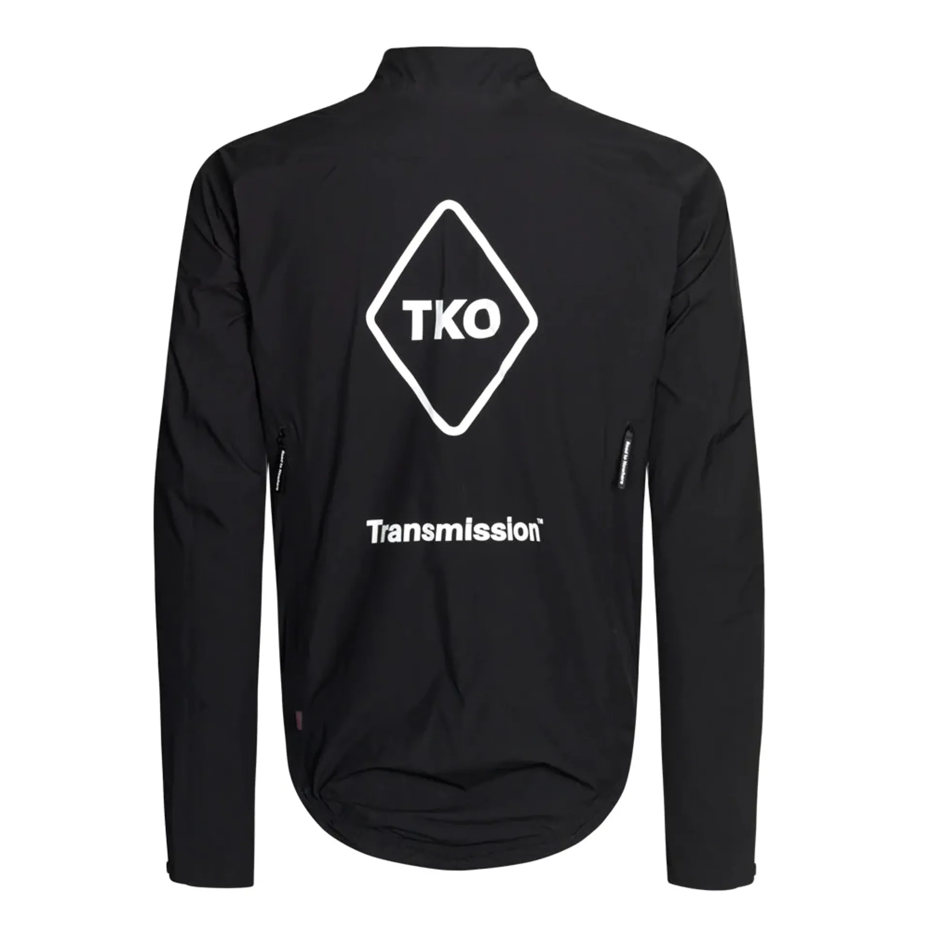 The PAS NORMAL STUDIOS TKO Essential Shield Jacket - Black Transmission is a cycling jacket designed for use in variable weather conditions. It is intended to provide wind and water resistance for road cyclists, with a focus on lightweight protection and packability. This model is suitable for training, commuting, or long-distance rides where weather protection is required.
