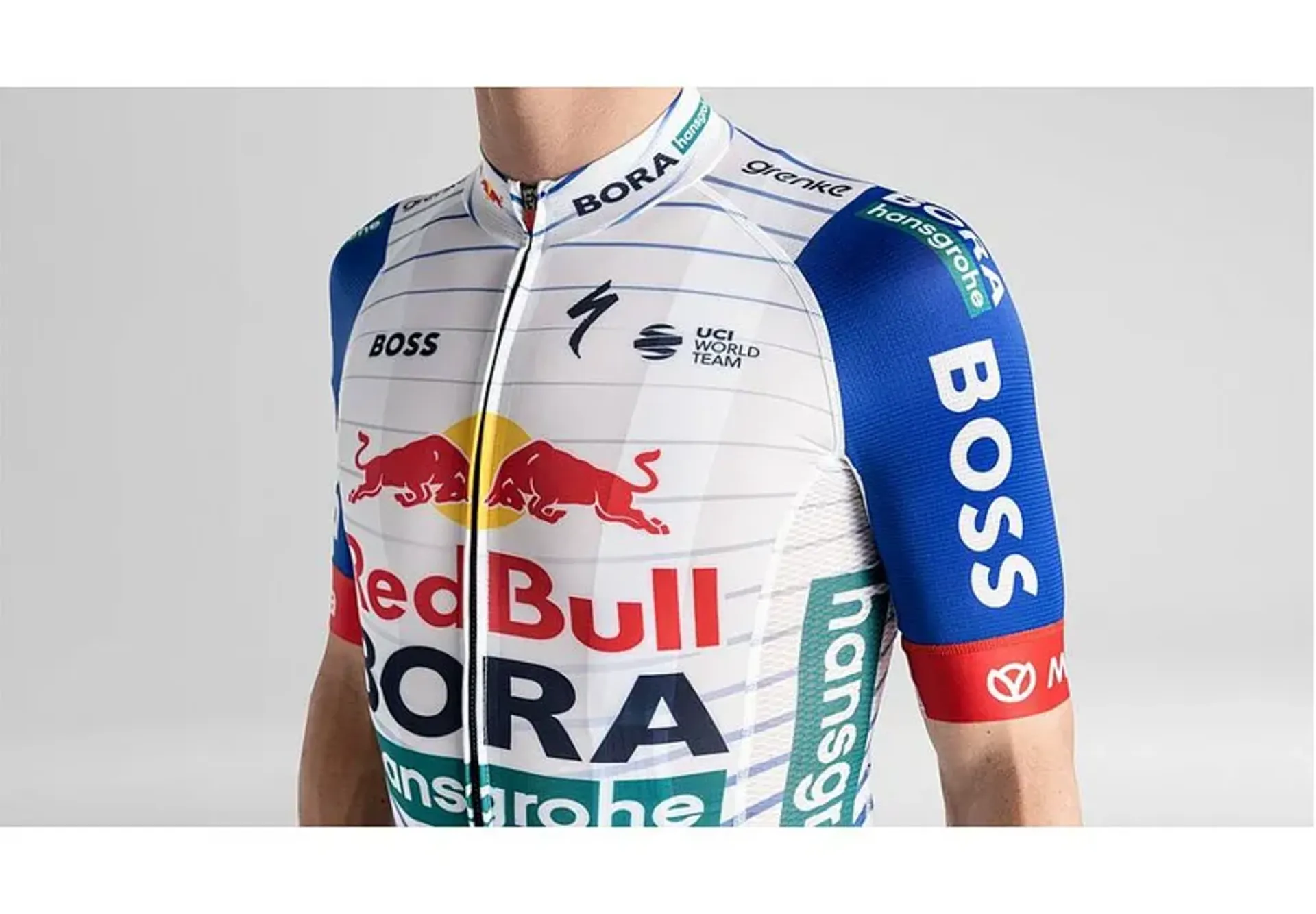 Red Bull - BORA - Hansgrohe Short Sleeve Replica Jersey White/RED BULL BLUE