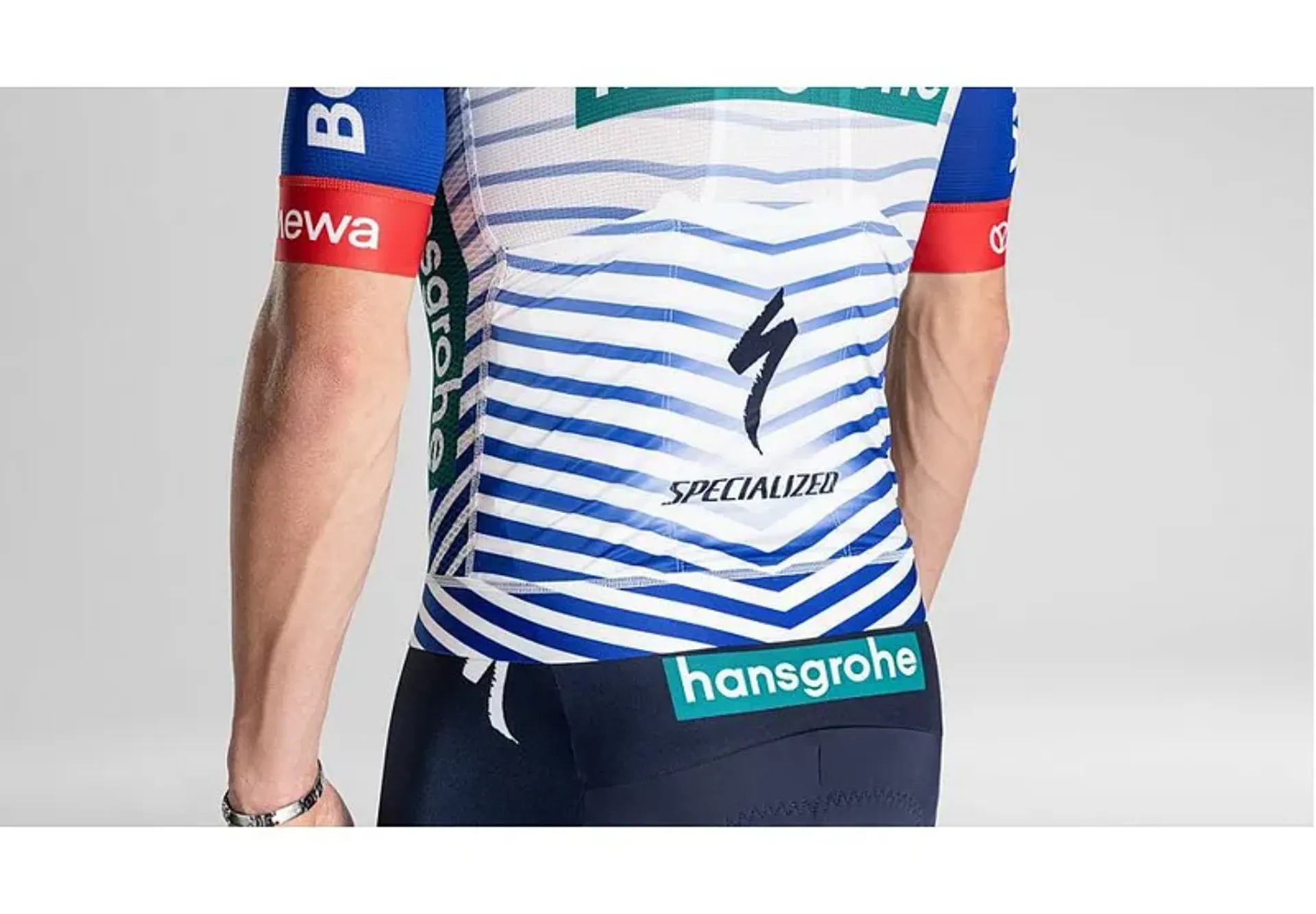 Show your support for red bull - bora - hansgrohe with the short sleeve replica jersey, featuring official team graphics and a pro-inspired design. Stretchy flat knit fabric in the front and breathable mesh on the back and sleeves keep you cool and comfortable, while upf 30+ protection shields your skin. Elasticated cuffs and a hem keep it secure, and three back pockets plus a full-length zipper add practicality. The form fit offers comfort without restriction, perfect for every rider