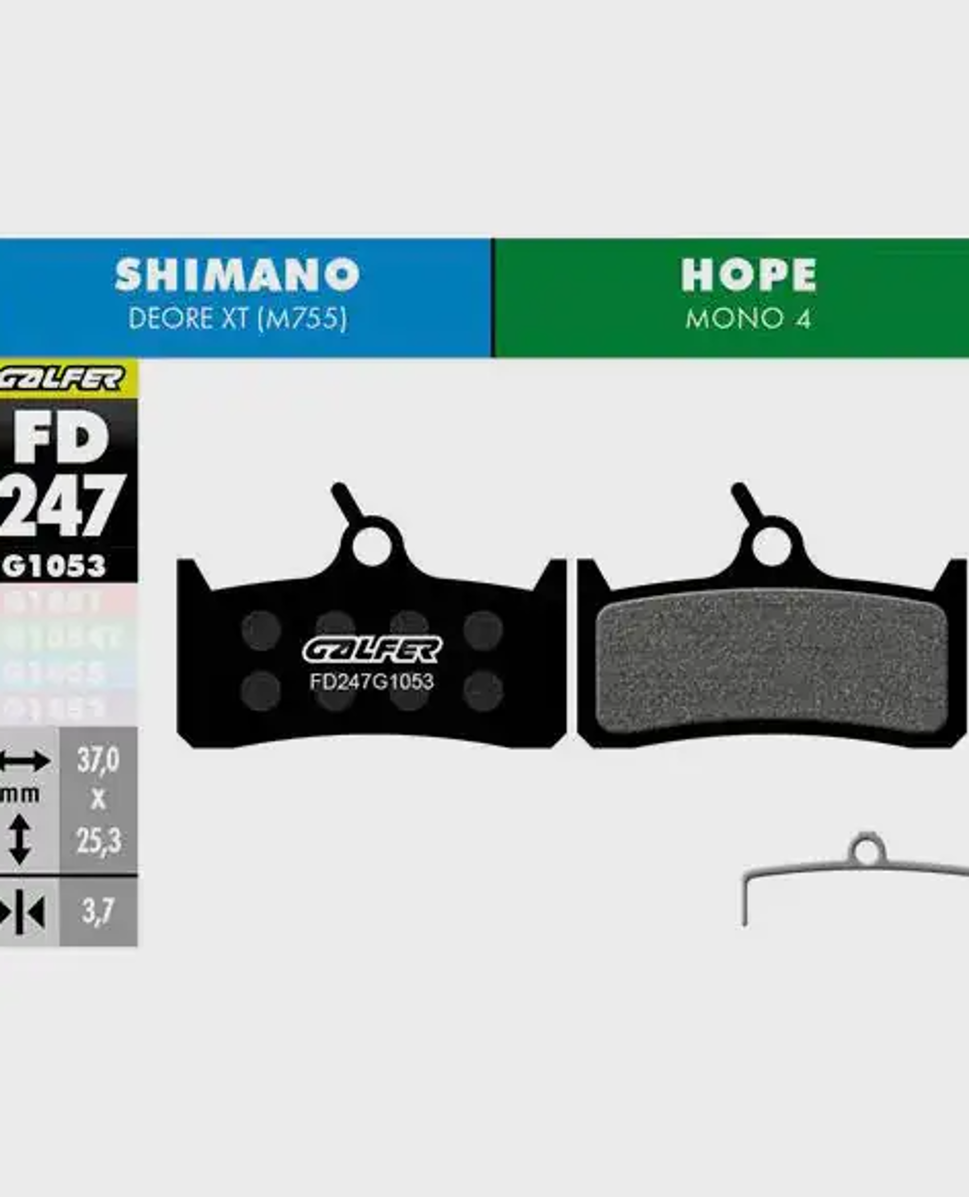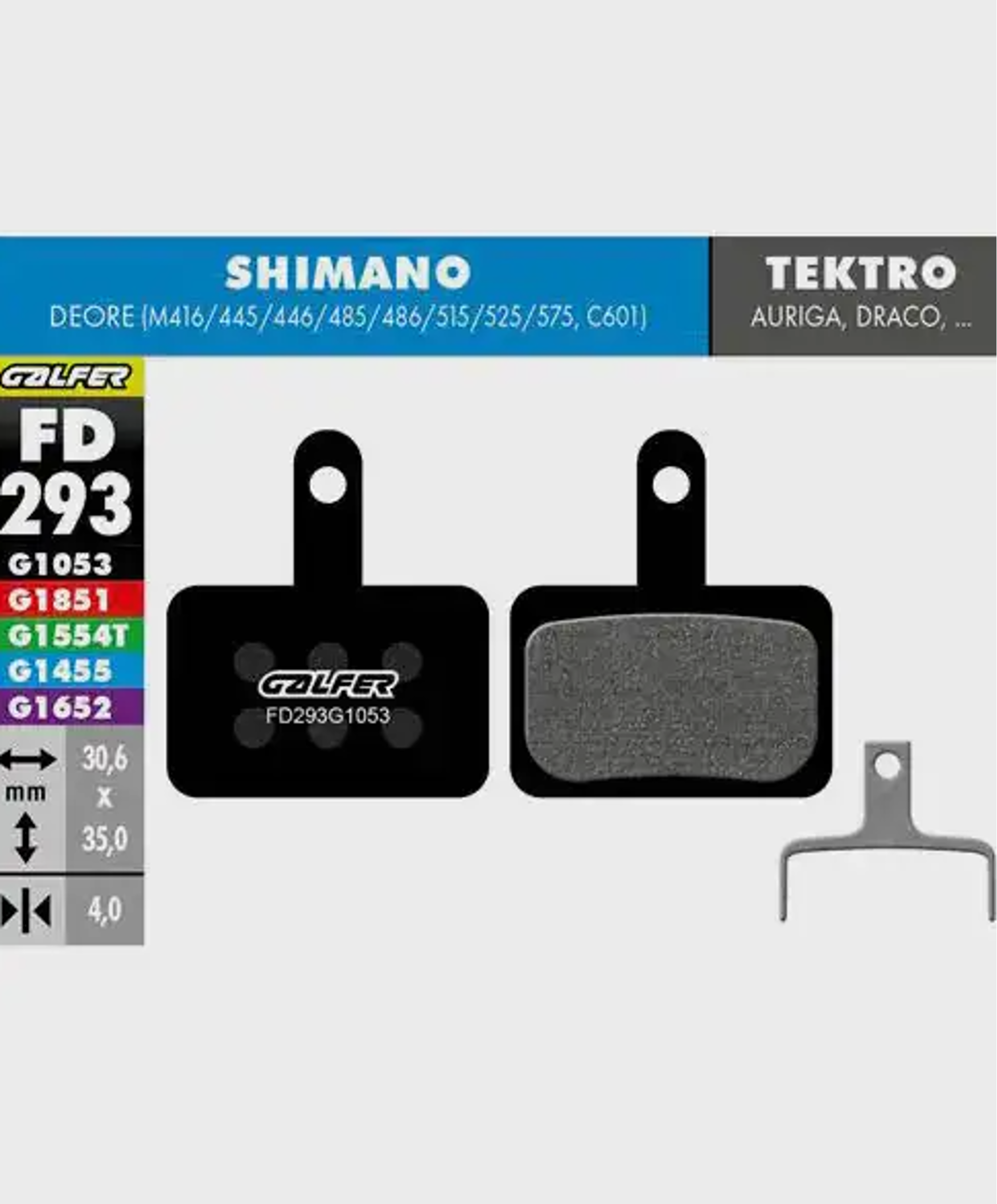• Shimano (A-type 2-piston) M975/M966/M965/M800/M776/M775/M765/M665/M655/M601/M596/M595/M585/M545/M535/R505/S501/S500/T665/T605; TRP-Dash Carbon