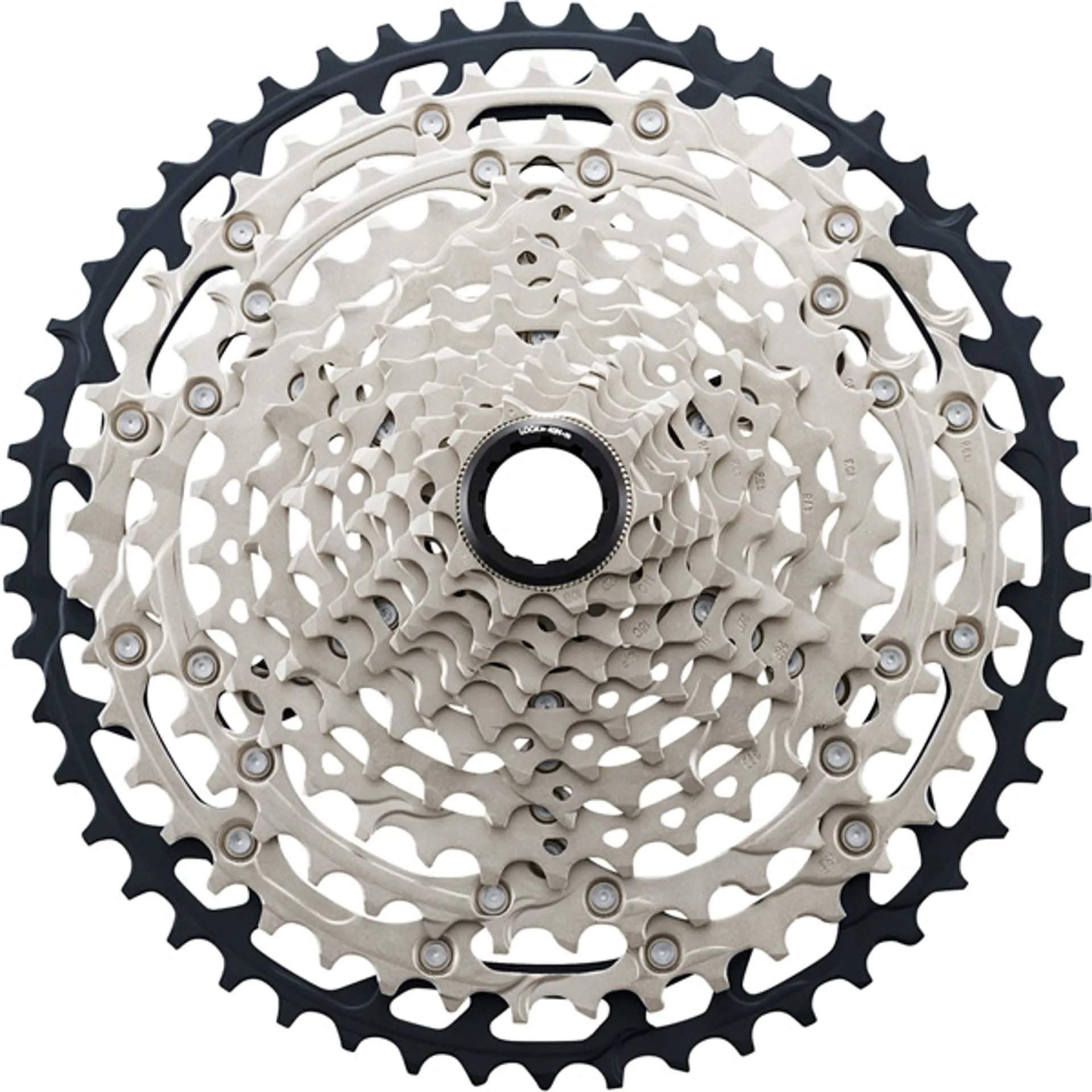 Slx m7100 12-speed micro spline MTB cassette featuring light weight minimal design sprocket carrier.