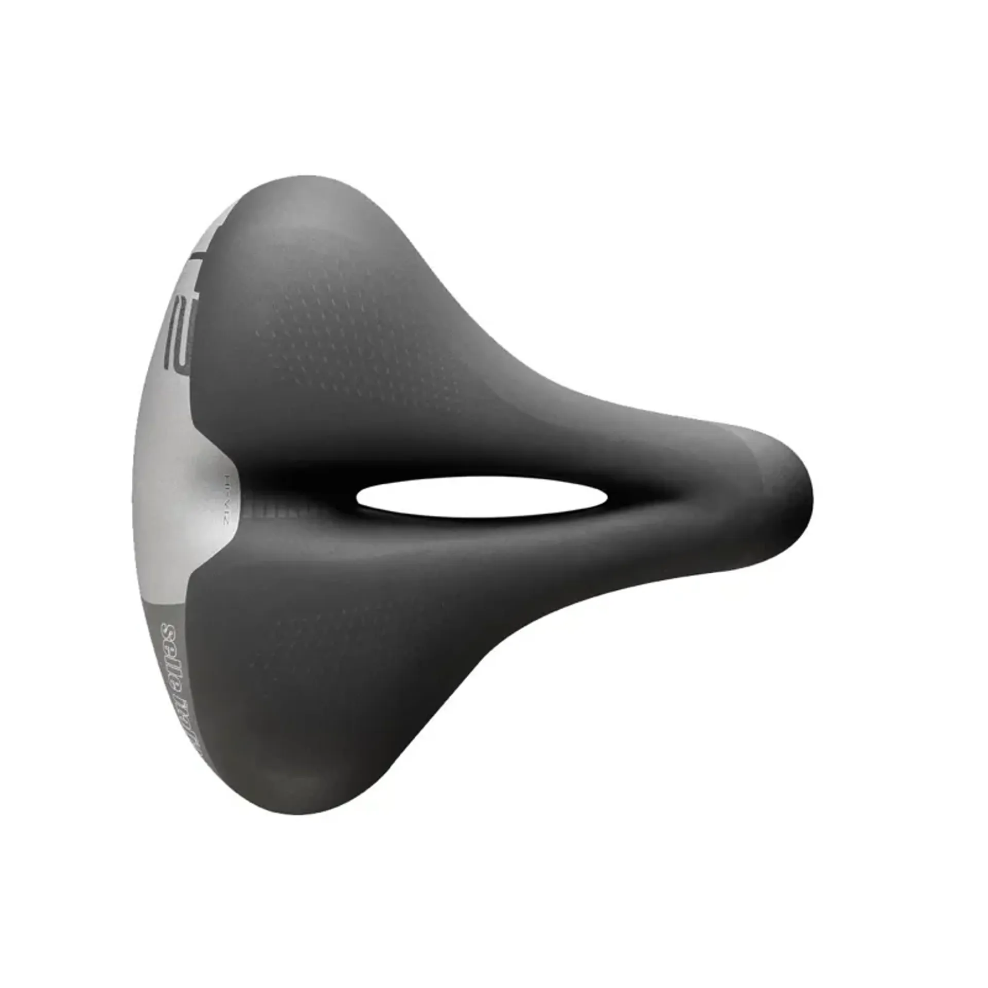 The T2 Flow makes comfort its main feature. Its wide and ergonomic seat allows any person to ride comfortably avoiding possible problems in the ischial area. The large layer of gel inside the padding, together with the central hole flow for the discharge of pressure from the perineal area, helps to further increase the feeling of comfort in every situation. The Hi-Viz inserts on the back of the saddle also ensure visibility and safety at night.