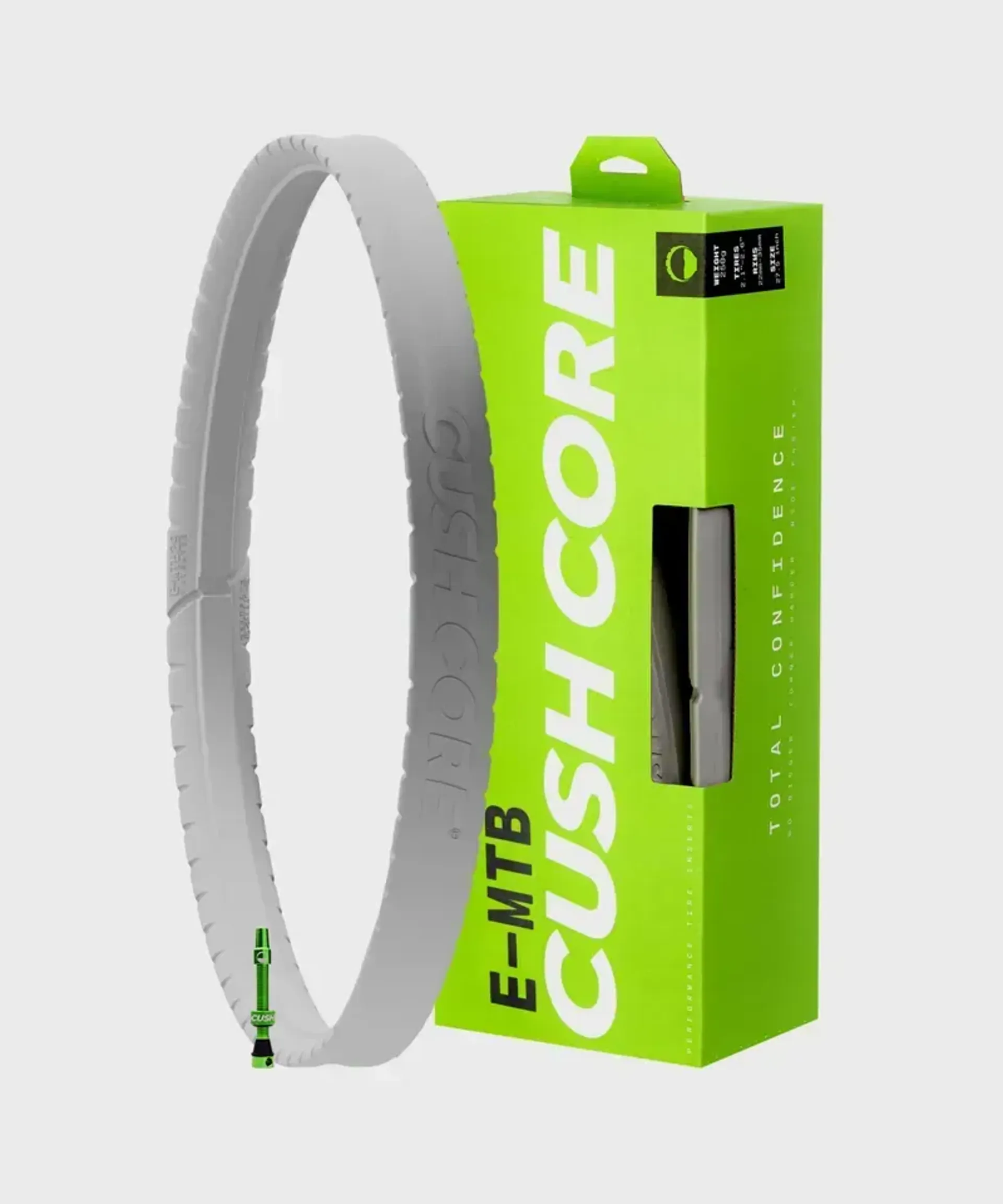 Cushcore transforms your tubeless tyre into a suspension system with a tune-able air spring and foam damper. A proprietary closed-cell polyolefin foam controls compression and rebound forces. It's lightweight, ultra durable, and impervious to sealant. Cushcore's patented profile applies constant pressure on the tyre sidewalls. This provides protection and stability even at low tyre pressures. Cushcore is designed to fit tight on the rim. This radial tension locks the bead to the rim while maintaining a supple tread patch.