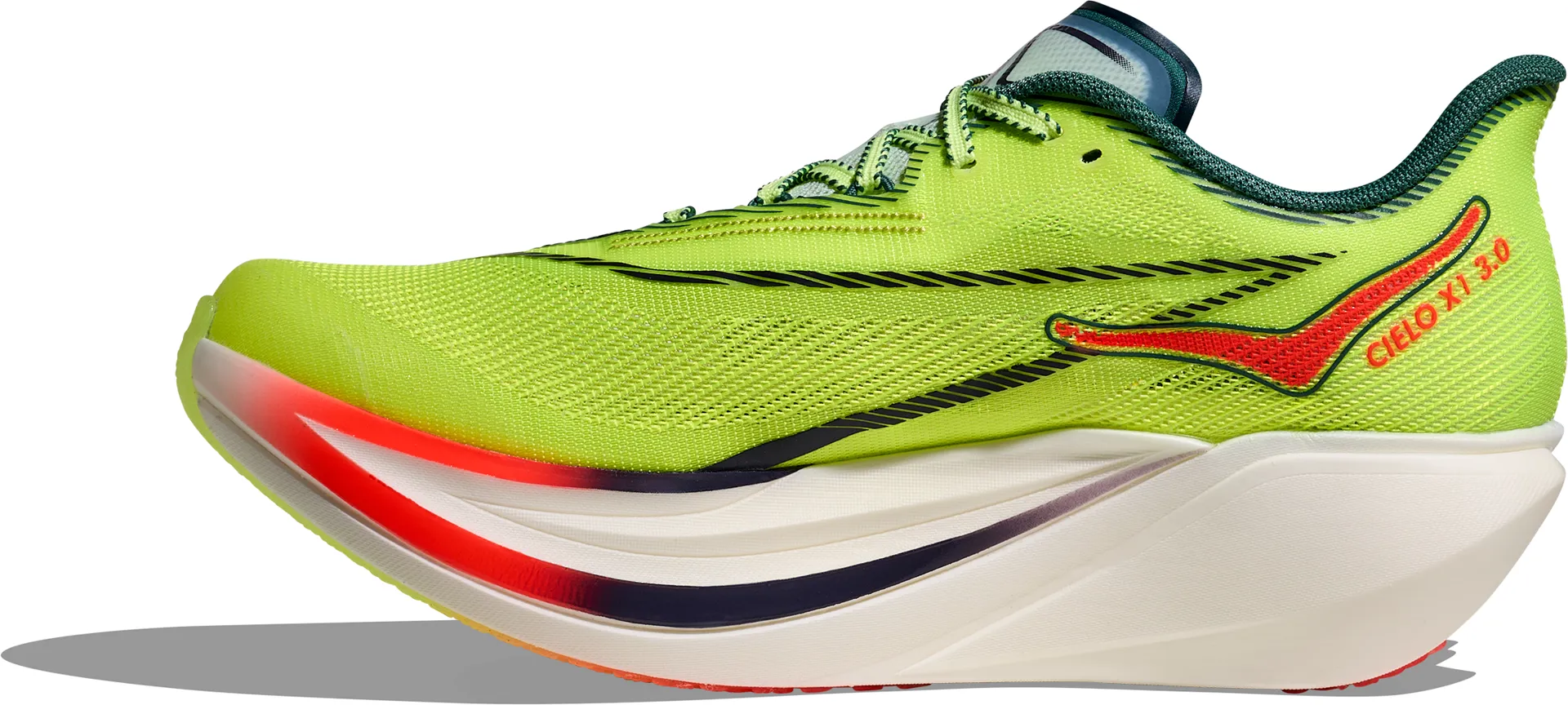 Get ready for life in the fast lane. A tip-of-the-spear product tuned for race day, the Cielo X1 3.0 delivers our lightest super shoe to date. Ultra-light and unquestionably snappy, we’ve shaved significant weight since launching our last iteration. A must for speed seekers, this pace-pushing racer enlists a propulsive carbon fibre plate, ultrasoft PEBA foam, asymmetrical lacing, and a grippy outsole for ultimate traction when chasing those PRs.