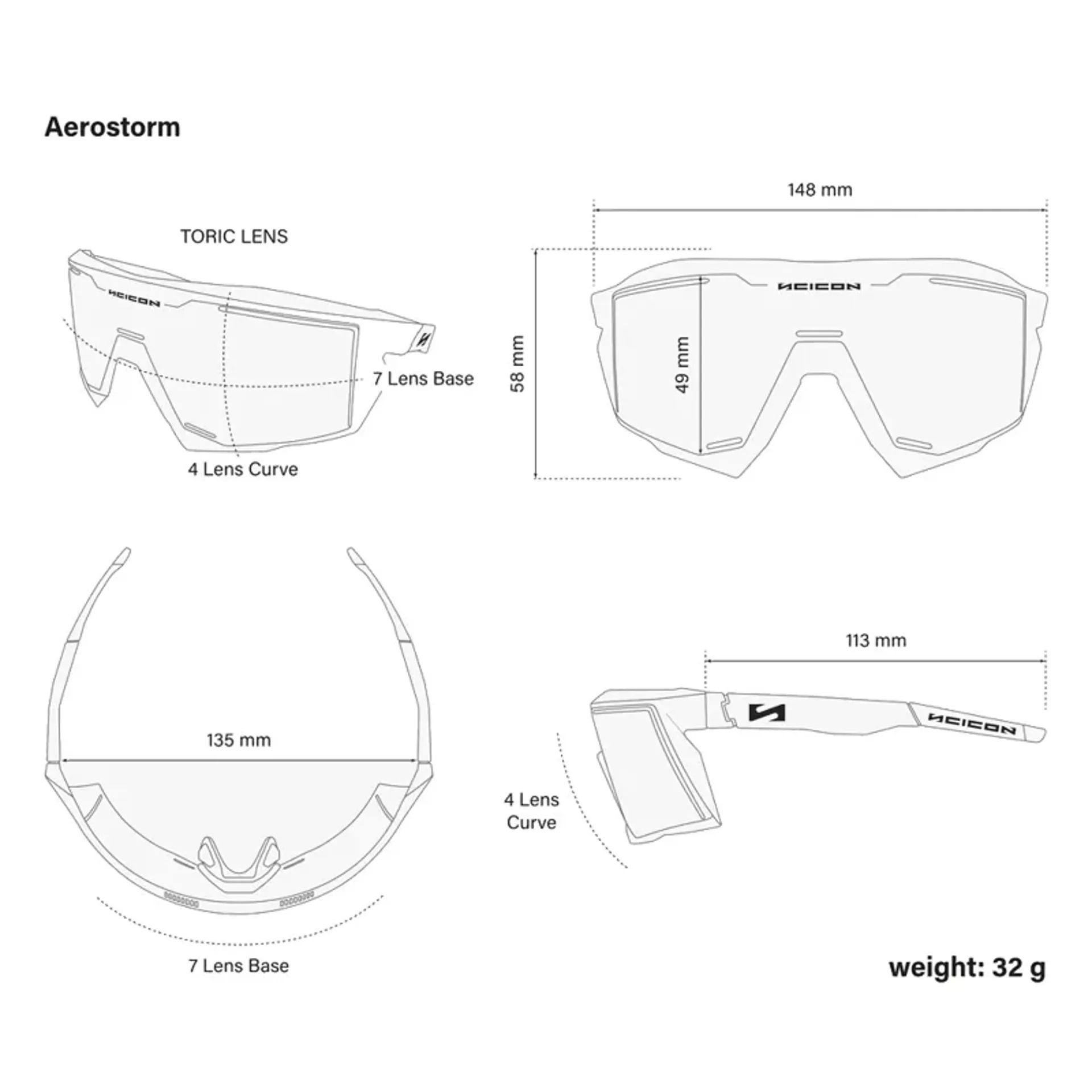 Aerostorm redefines sports eyewear by integrating the Monolith Optics Monoblock Frame into the Space Vision Toric lens UV400 protection for exceptional performance.
