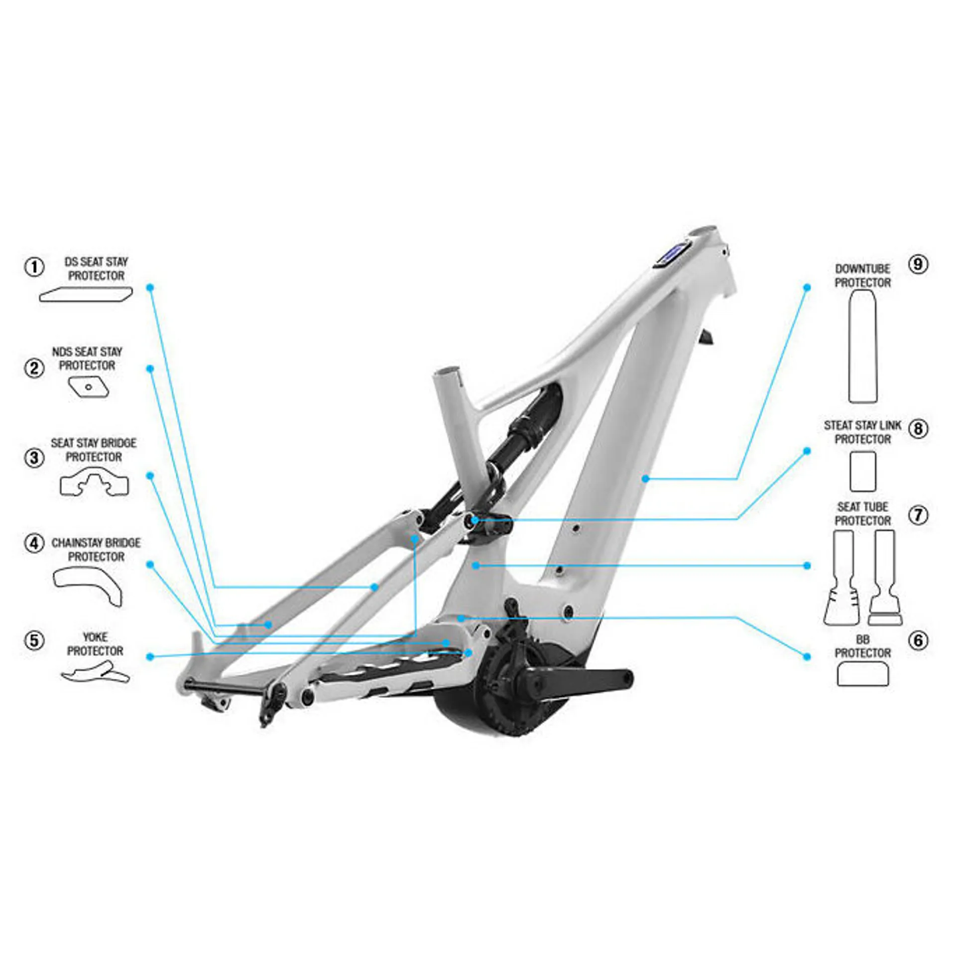 A comprehensive kit of die-cut mylar protector decals for 2019-20 Turbo Levo