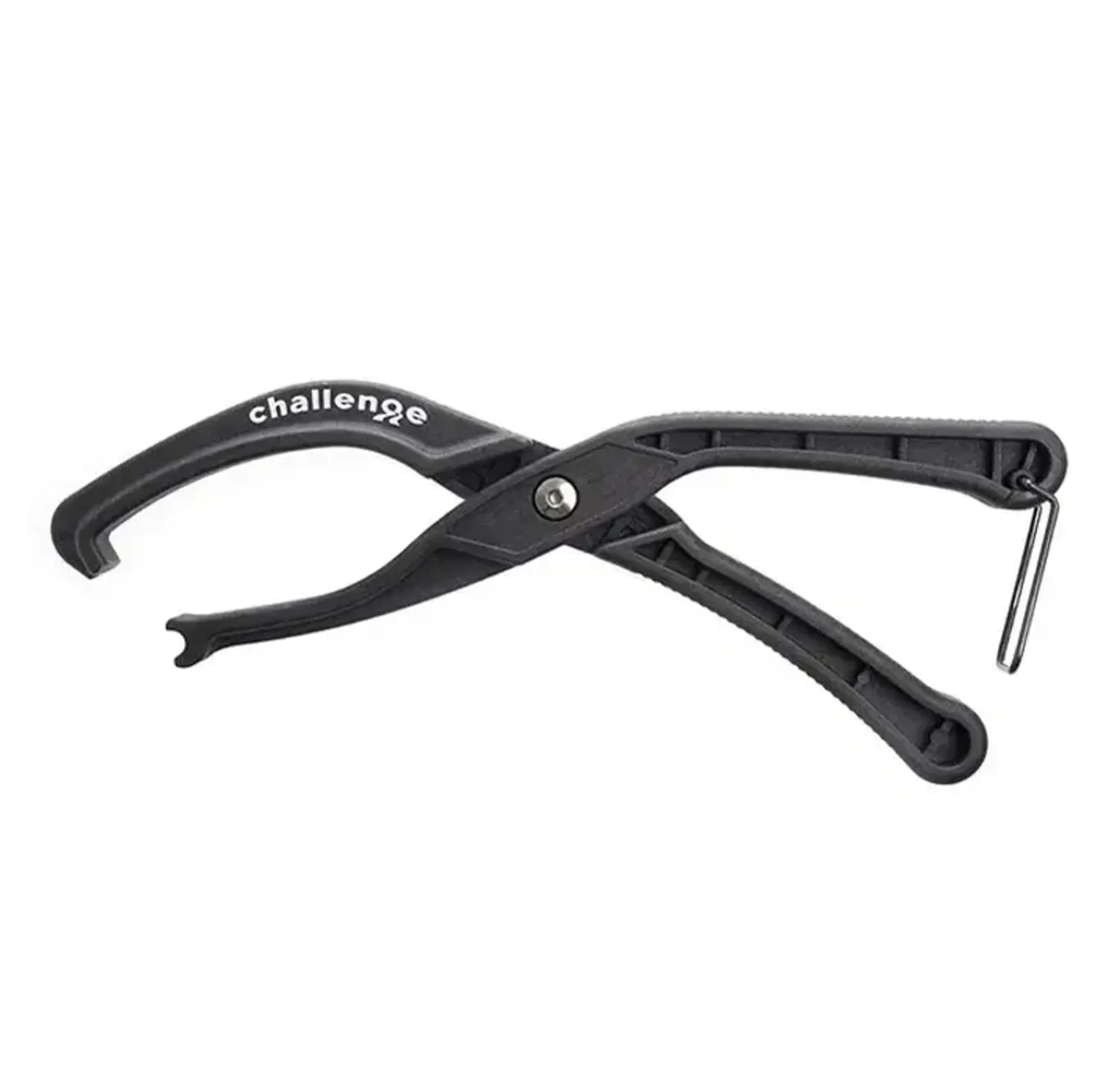 The Challenge clincher mounting tool features single-handed application and includes a convenient storage clip.