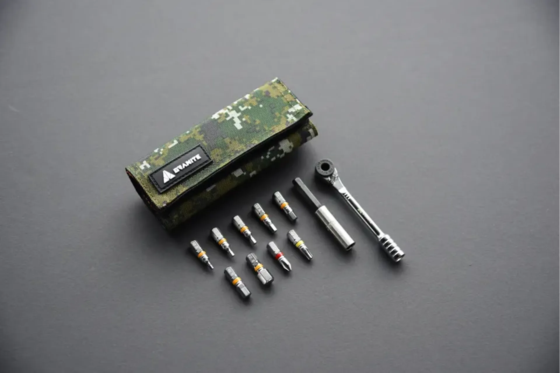 Rocknroll is made with special abrasion resistance and high strength cordura fabric. A special loop strap with protective patch at the back of roll is designed to work with granite rockband carrier strap. Rocknroll comes with a mini ratchet tool, extension rod, and 9-bit kit. The ratchet tool may be small in the size but tough enough to withstand 60nm at the gear. Tool bits are made with premium quality s2 alloy steel for exceptional strength and cnc-cut for precision engagement. There are 7 hex bits (2mm/2.5mm/3mm/4mm/5mm/6mm/8mm), star bit (t25), and philips bit (ph2) in the kit. Additional two pockets for your spare chain quick link.